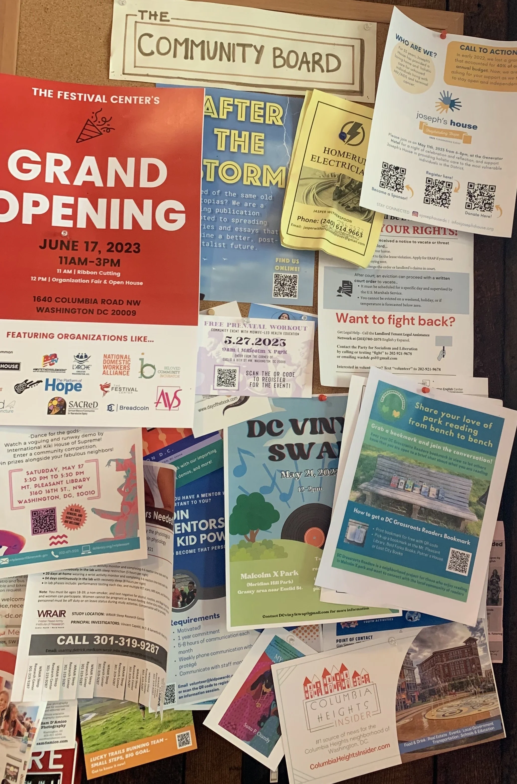 The Potter's House's history wall in the hall behind the cash register is a glimpse to the past. There are photographs of the original menu, tales of social missions championed by patrons of The Potter's House, and articles including other recognizable Adams Morgan landmarks. The DC Preservation League states, "For the past 63 years, Potter's House has evolved with the community that it serves, offering what is needed based on the issues at hand. Despite all of the social, economic, and political change that has affected Adams Morgan over the past six decades, The Potter's House remains a space of service, outreach, and neighborly conversation.”
